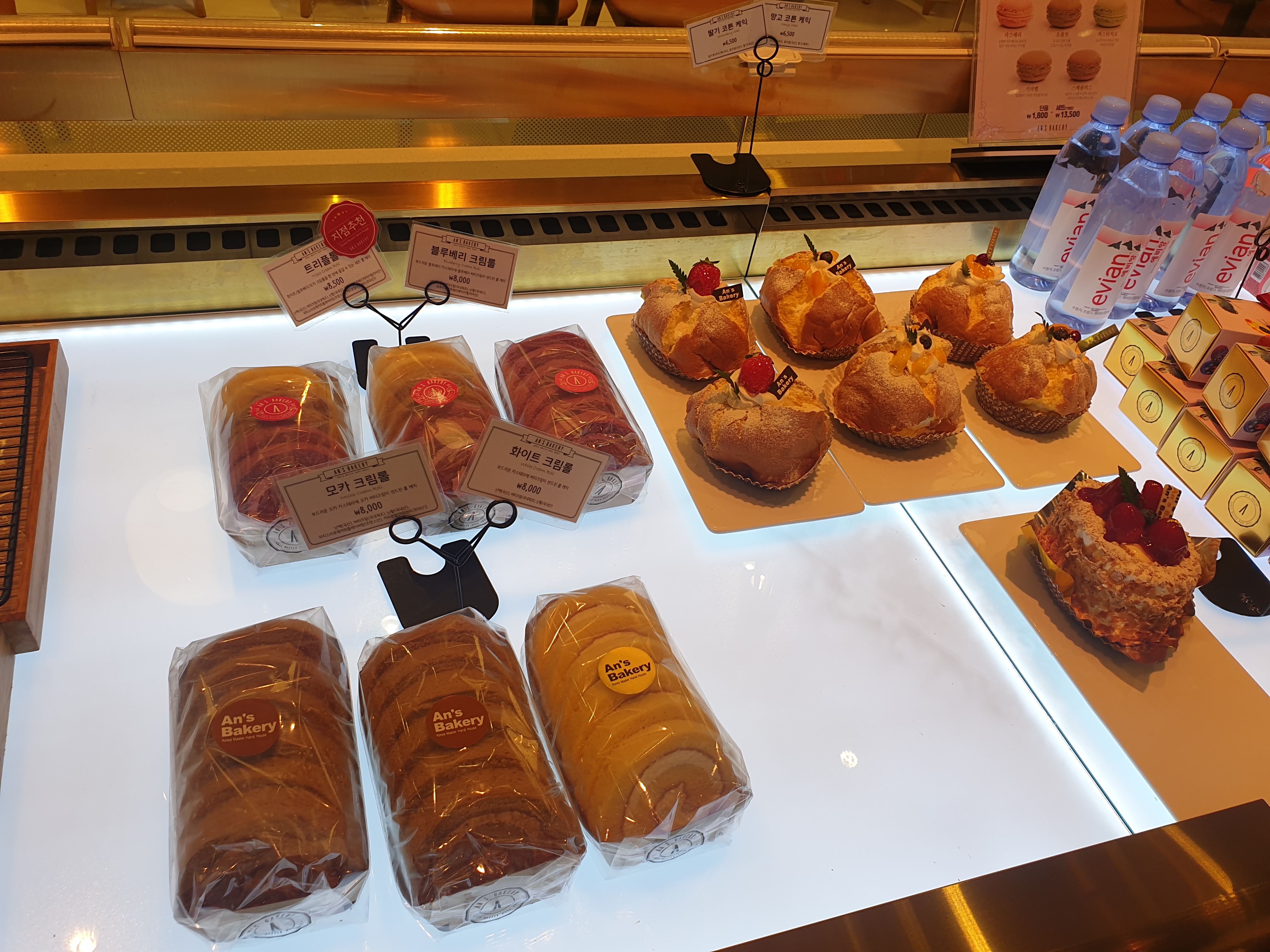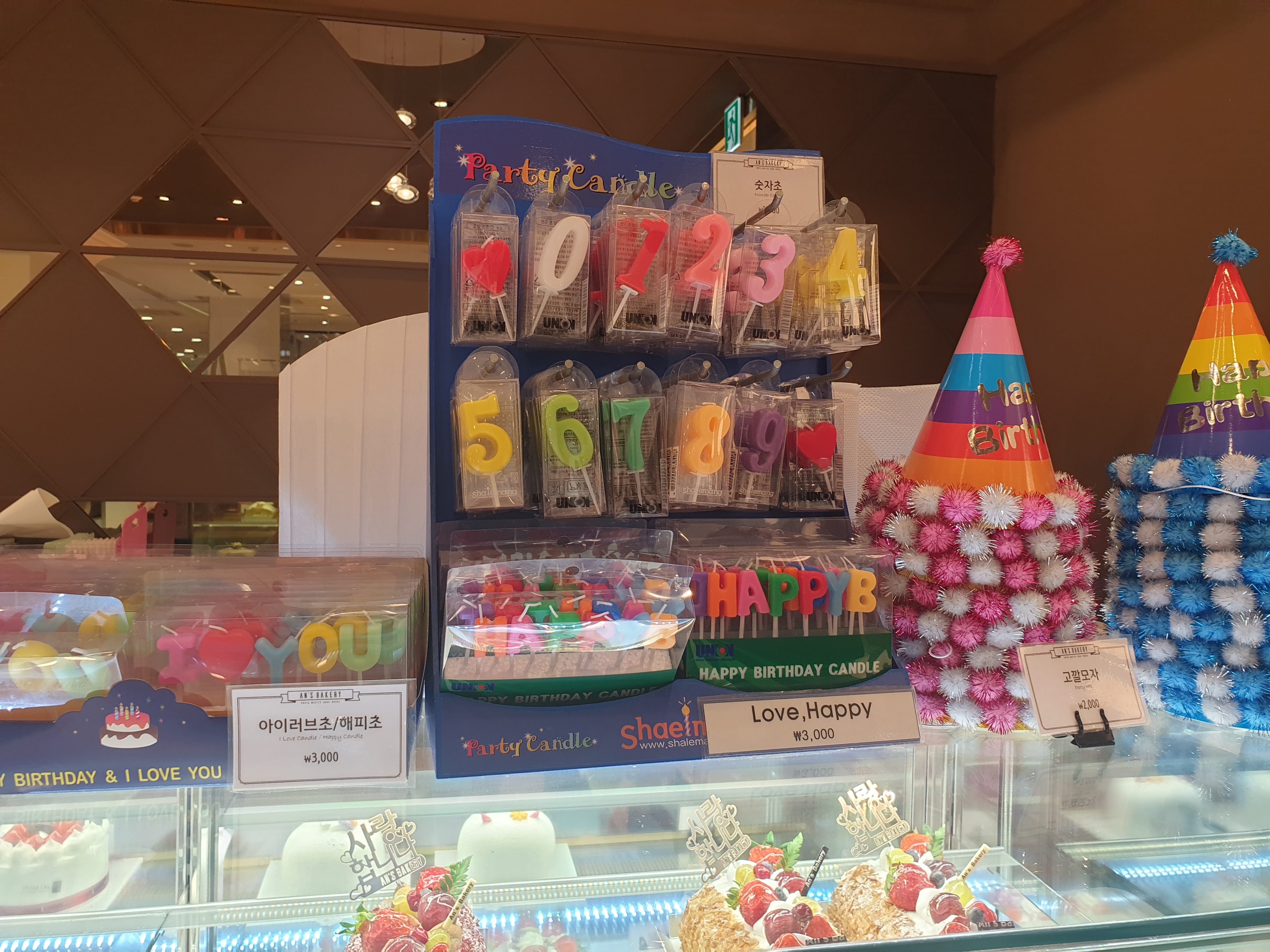 냉장코너에는 생크림과 과일이 들어간 빵종류들이 가득가득합니다. 딸기샌드 너무 맛있어보여요. 언제먹어도 맛있는 케익과 데코용품도 예쁘게 진열되어있어요.