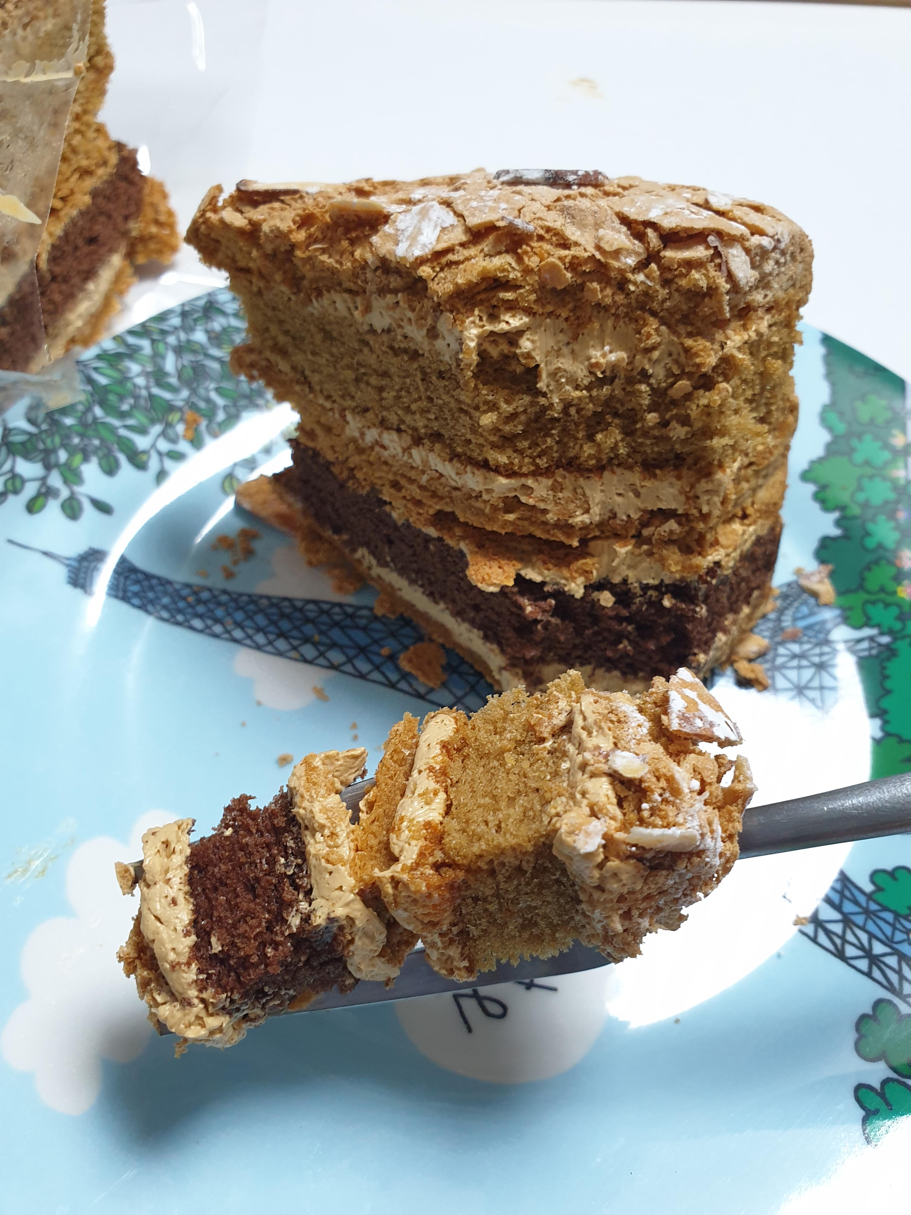 모카 네오네즈는 할인이 안되는 상품이었어요. 오늘 아침으로 커피랑 먹었는데 처음 향은 커피향이나 죠리퐁향 처럼 느껴졌어요. 초코시트와 모카시트가 함께있는점이 좋았고 위아래 다쿠아즈로 되어있어서 식감이 참 좋앟어요. 다만 중간중간 들어있는 크림이 버터크림인것 같은데 좀 느끼하더라구요. 어릴때 고전케이크(?)에 자주쓰이던 그런 크림느낌 같았는데 크림만 좀 덜 느끼했으면 딱 제취향이었어요. 그래도 커피랑 먹으니까 맛있었어요.
