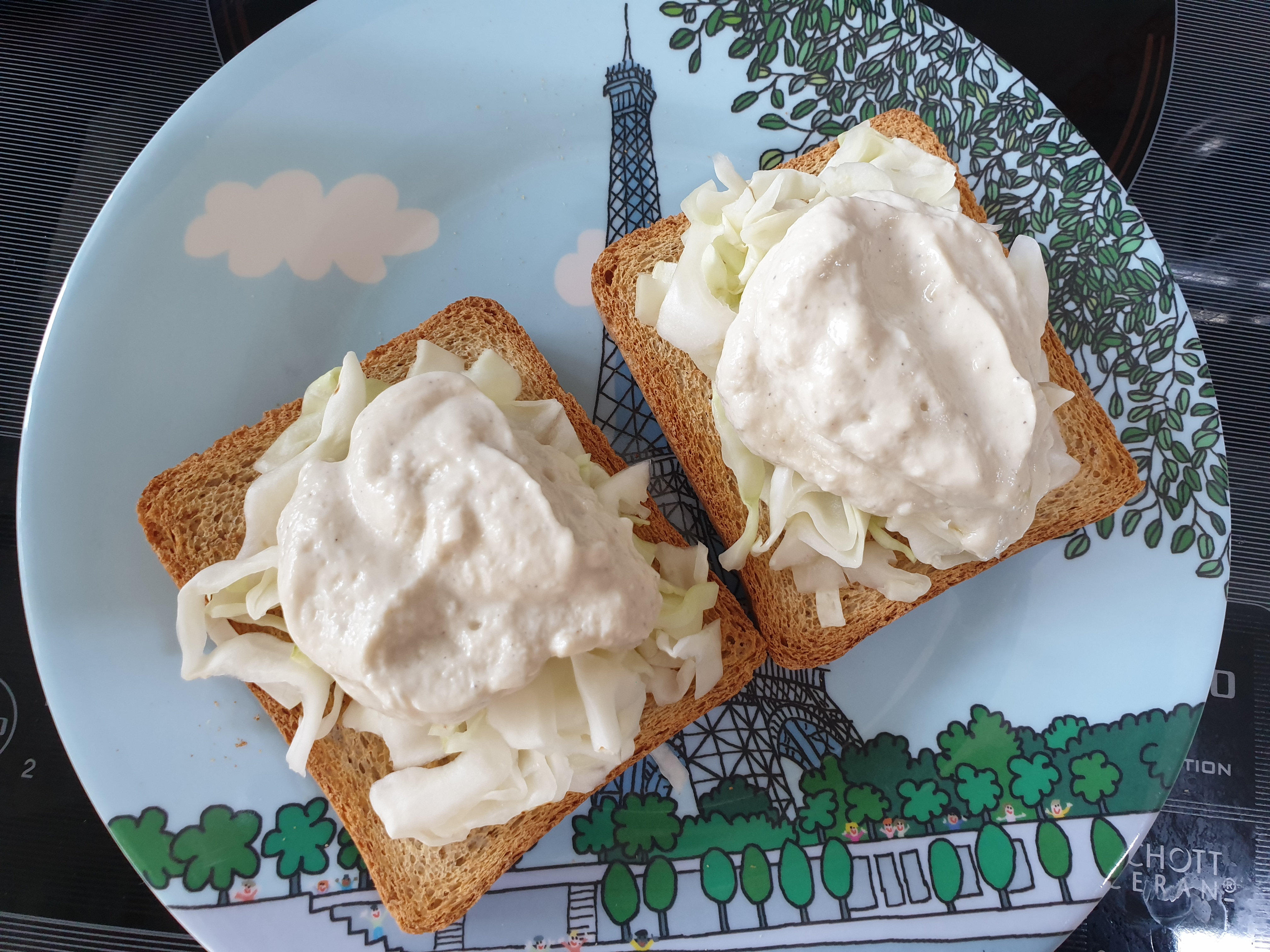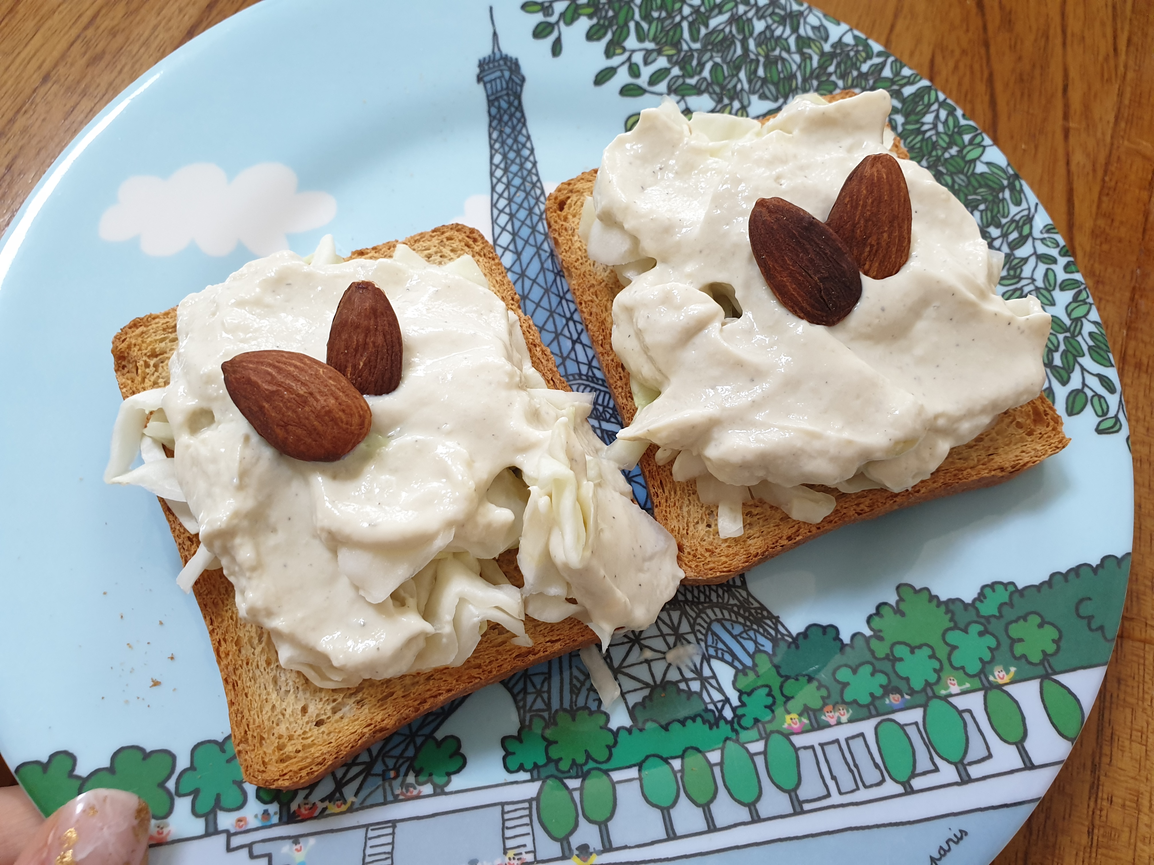 두부마요네즈는 일반마요네즈보다 훨씬 고소하고 진한 콩물같기도 합니다. 크림치즈같은 식감에 고소한 두부맛이 나서 개인적으로는 아주 만족하면서 먹었어요.