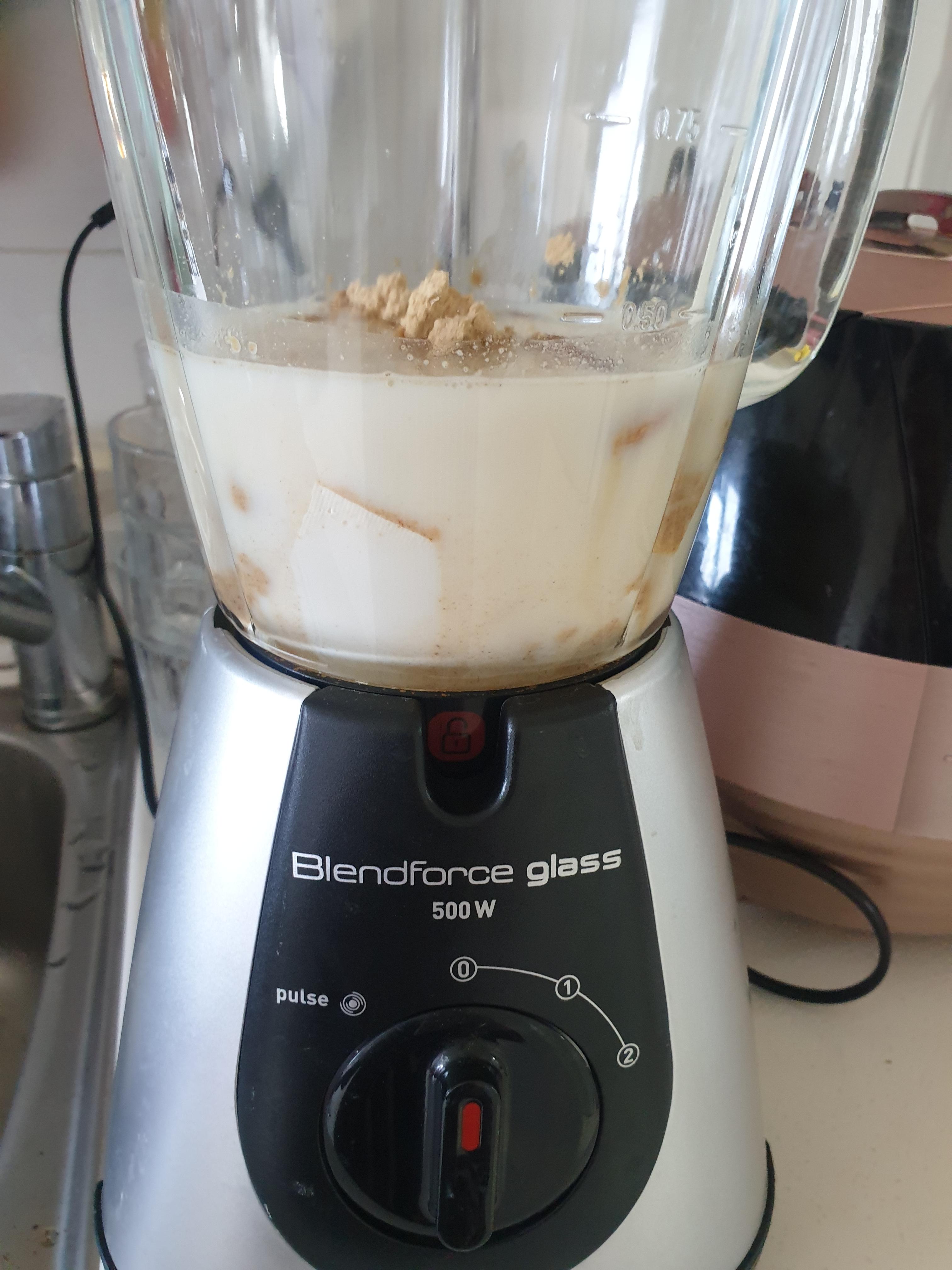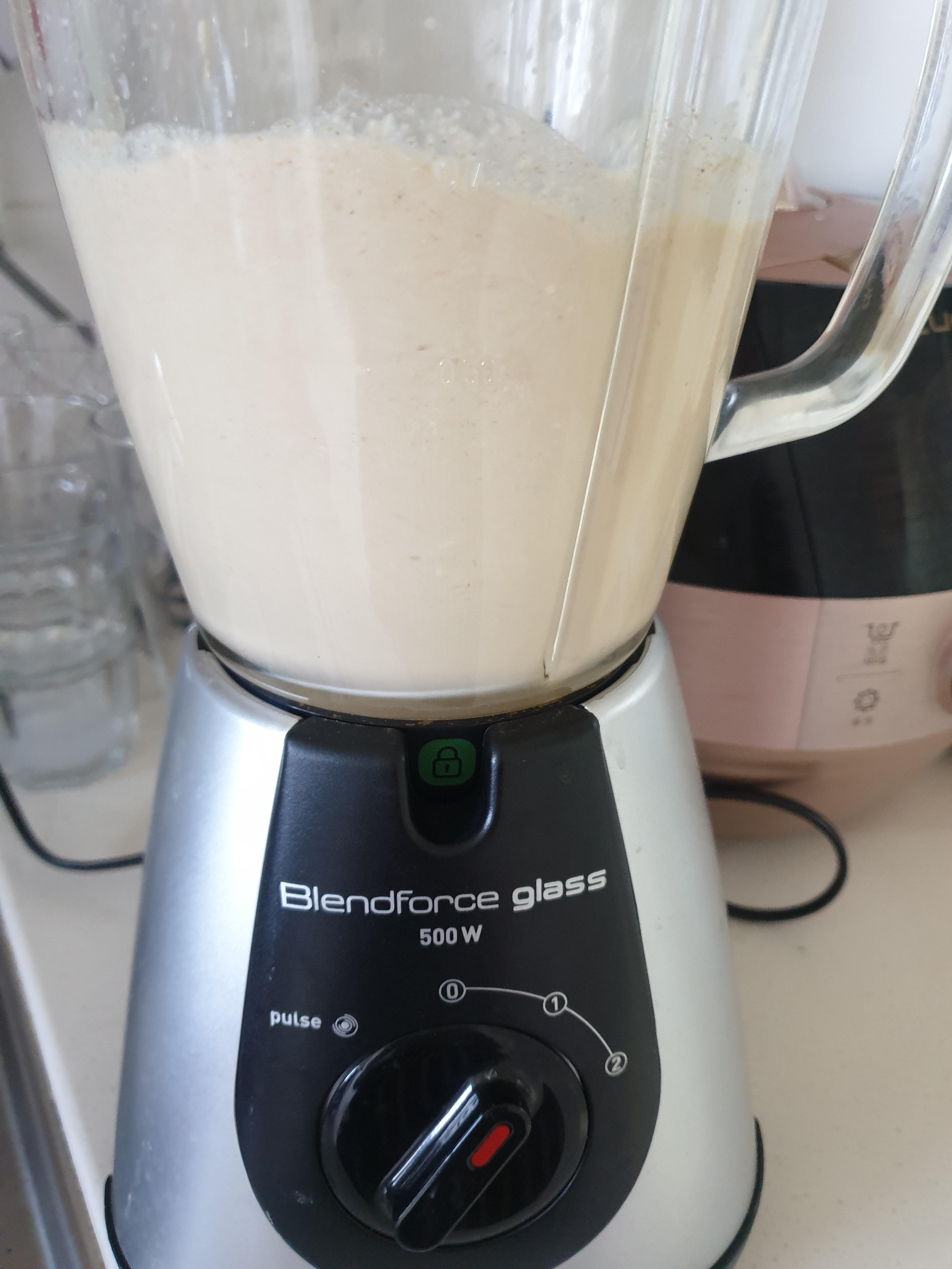 우유는 두부의 2배정도 넣어주시고(두유도 가능), 견과류 조금, 그리고 콩가루 두스푼 정도 넣었습니다. 설탕과 소금은 조금씩만 넣어보시고 갈아본뒤 마지막에 간보고 추가로 조절해주시는게 좋습니다. 이대로 바로 믹서에 넣고 곱게 갈면 맛있는 콩국물이 완성됩니다.