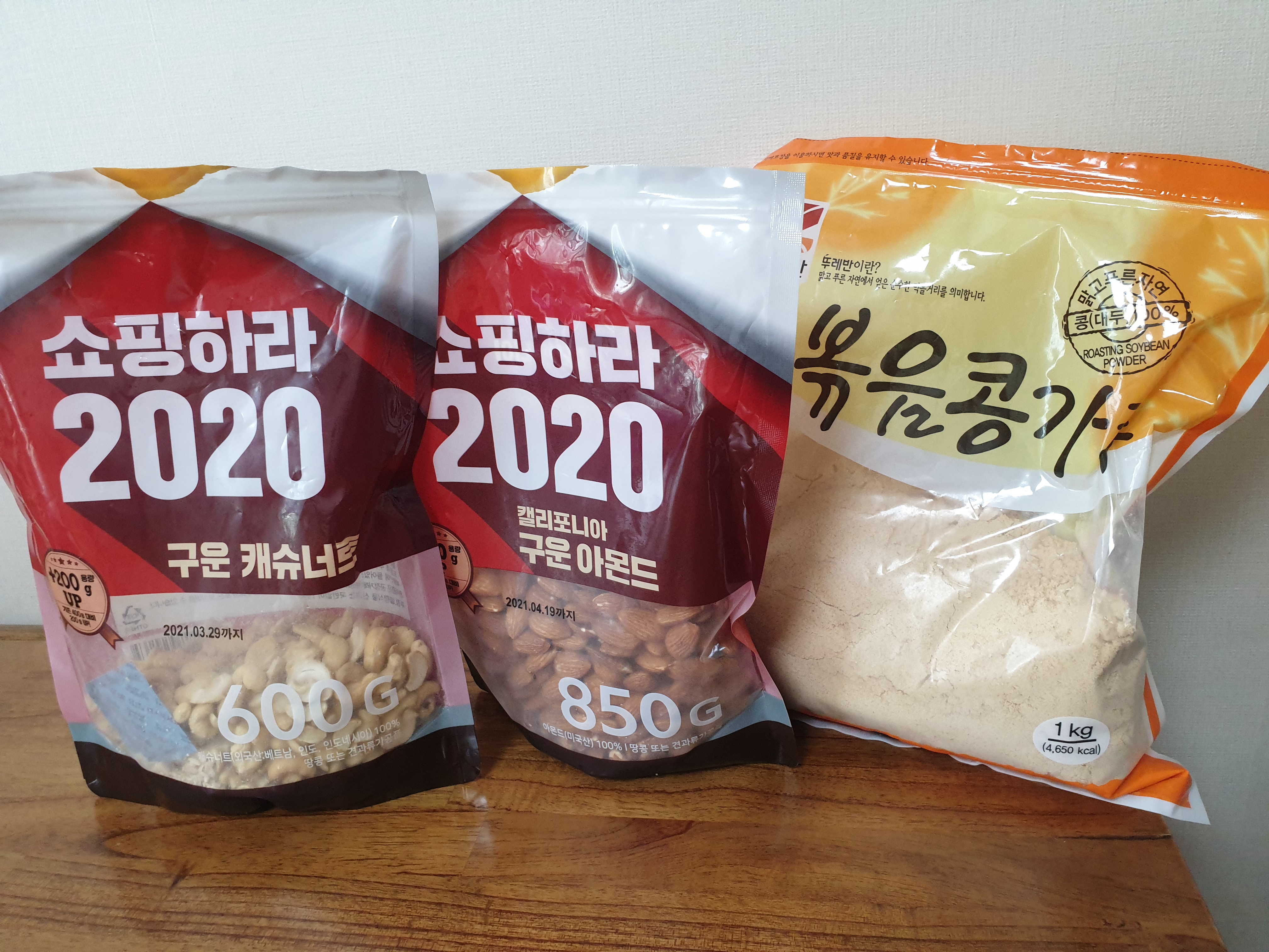 필수재료로는 두부와 우유이고, 나머지콩가루나 견과류나 땅콩버터는 있는것들만 넣어주셔도 상관 없습니다. 가급적이면 골고루 넣어주어야 고소한 맛이 잘 살긴합니다. 정말 뭐가 없다싶으면 통깨라도 넣어주시면 좋아요. 저는 집에있던 견과류 구운캐슈너트와 구운아몬드, 그리고 볶음콩가루를 사용했어요.