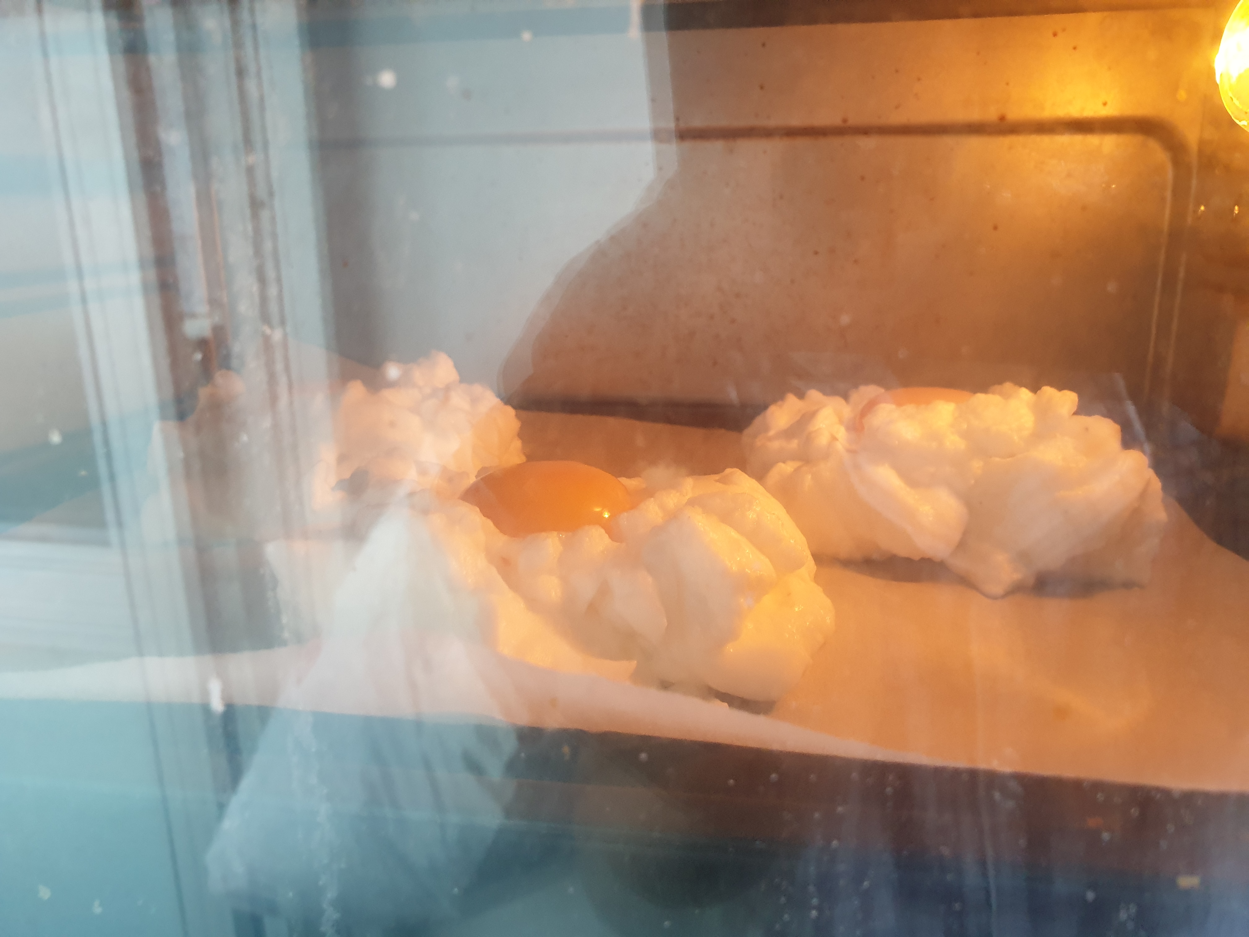 맛은 확실히 퐁신퐁신하고 쫀쫀하니 맛있어요. 흰자 부분의 식감이 그냥먹던 계란후라이랑은 또 달라서 재미도 있고 보기에도 좋아요. 노른자 부분은 반숙정도로 익어서 흰자를 콕 찍어먹어도 좋더라구요. 그냥 이것만 해서 간식으로 먹어도 좋고 토스트에 햄이랑 곁들여서 브런치로 먹어도 정말 좋을 것 같아요. 일단 비쥬얼이 너무 좋아서 누구 해주면 우와 하는 소리 절로 나오는 간식이에요. 머랭을 잘 치는게 가장 중요한데 거품기만 있으면 어렵지 않으니 손님접대용으로 추천 드립니다.