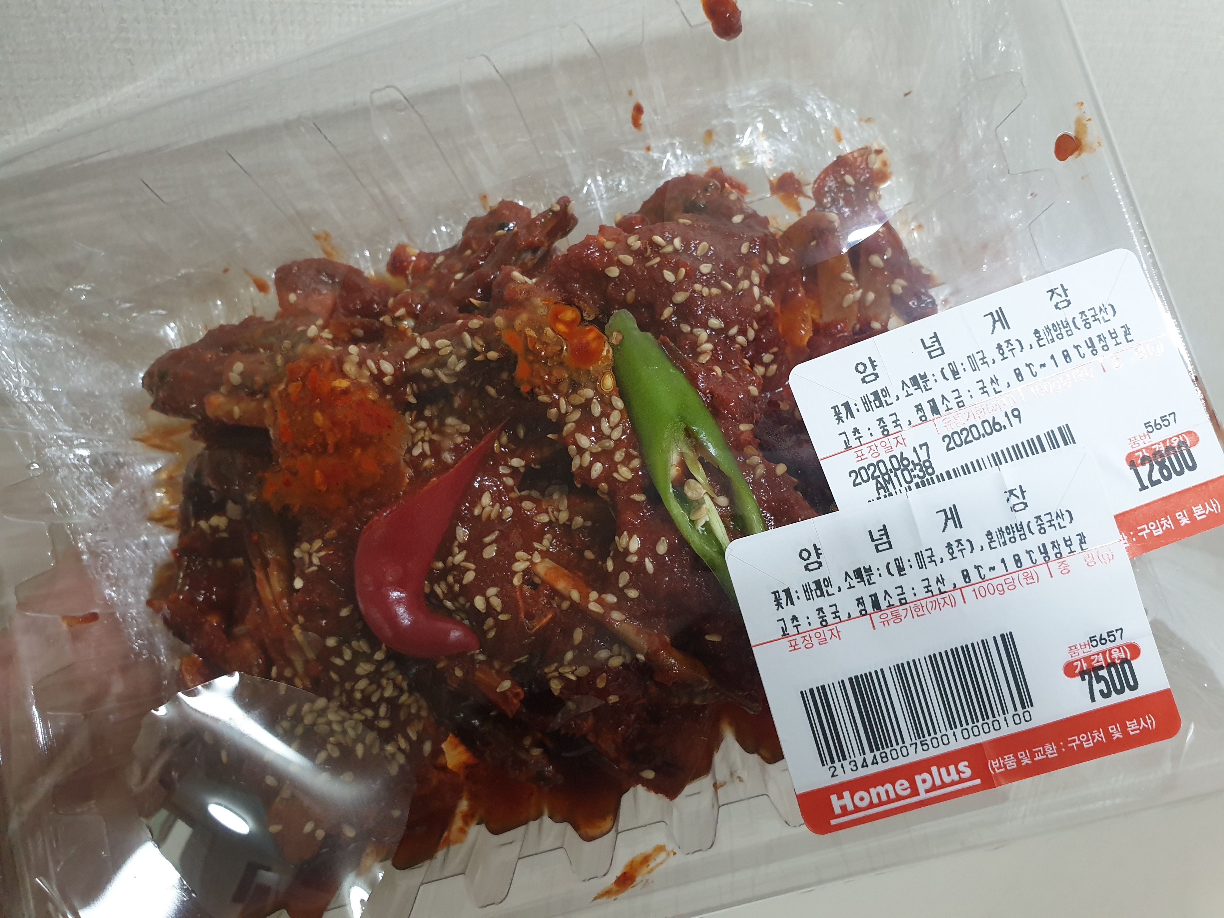 양념게장은 그냥 제가 좋아해서 사와봤어요. 홈플러스 가면 가끔 사오는데 여기 조리사 여사님 손맛이 좋은건지 항상 너무 맛있더라구요. 양념이 딱 제취향 이에요. 저녁 마감시간에 가면 할인받아서 7,500원에 저렴하게 구매할 수 있습니다.
