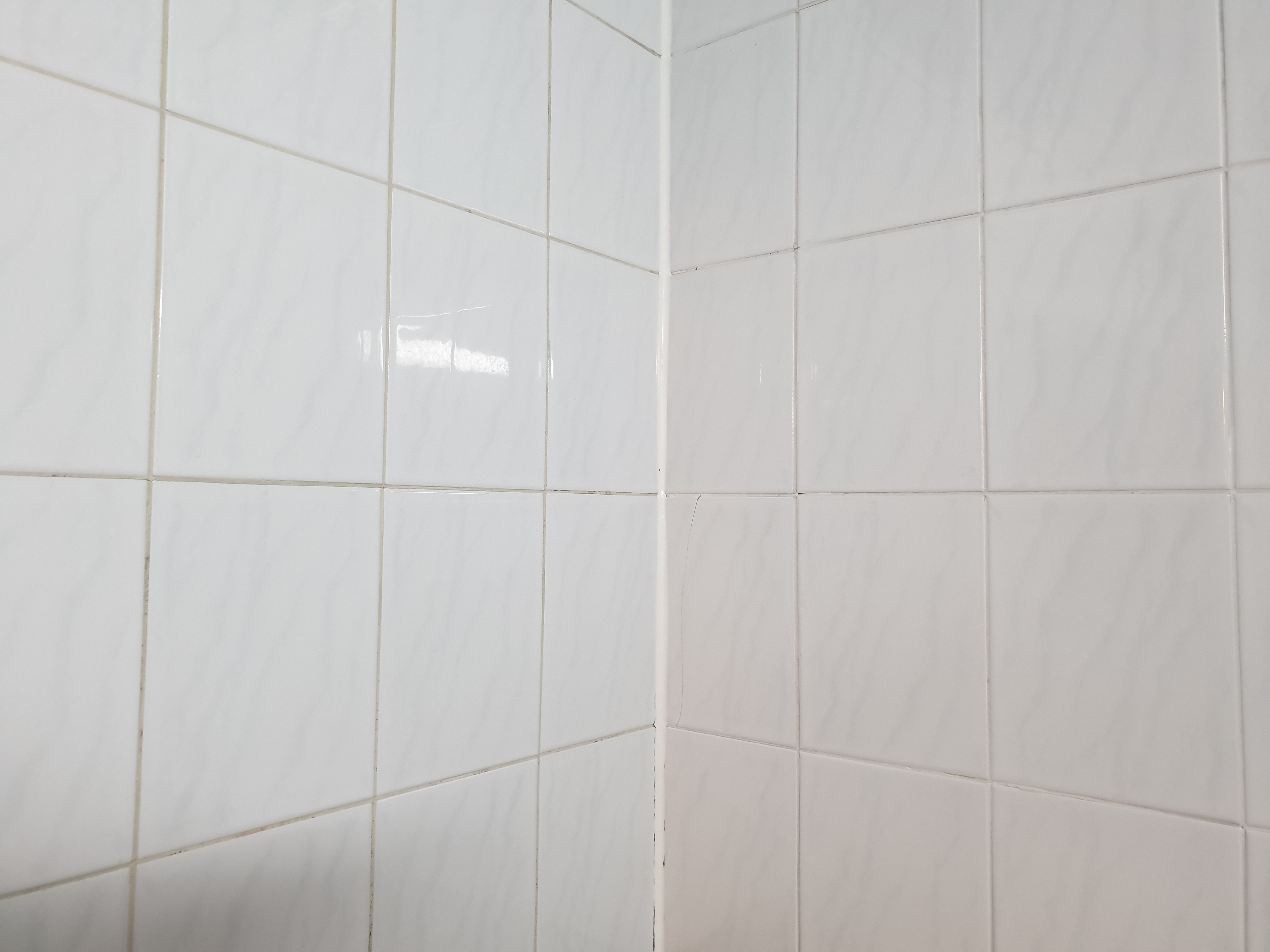 여기는 부엌보다는 덜 더러워서 사진으로는 티가 잘안나는데 왼쪽이 원래타일이고 오른쪽이 타일줄눈마카펜으로 칠해준 모습입니다. 실제로 보면 확실히 밝아져서 만족 중이에요. 마카펜을 칠해준 이후에는 잘 말리고 화장실을 사용 해주시면 됩니다. 지금은 일단 힘들어서 하다 말았는데 꽤 많은곳에 썼는데도 펜하나를 다쓰진 못했어요. 모자랄까봐 두개를 구매했었는데 잘 보관했다가 더러워지면 또 칠해버려야 겠네요.
