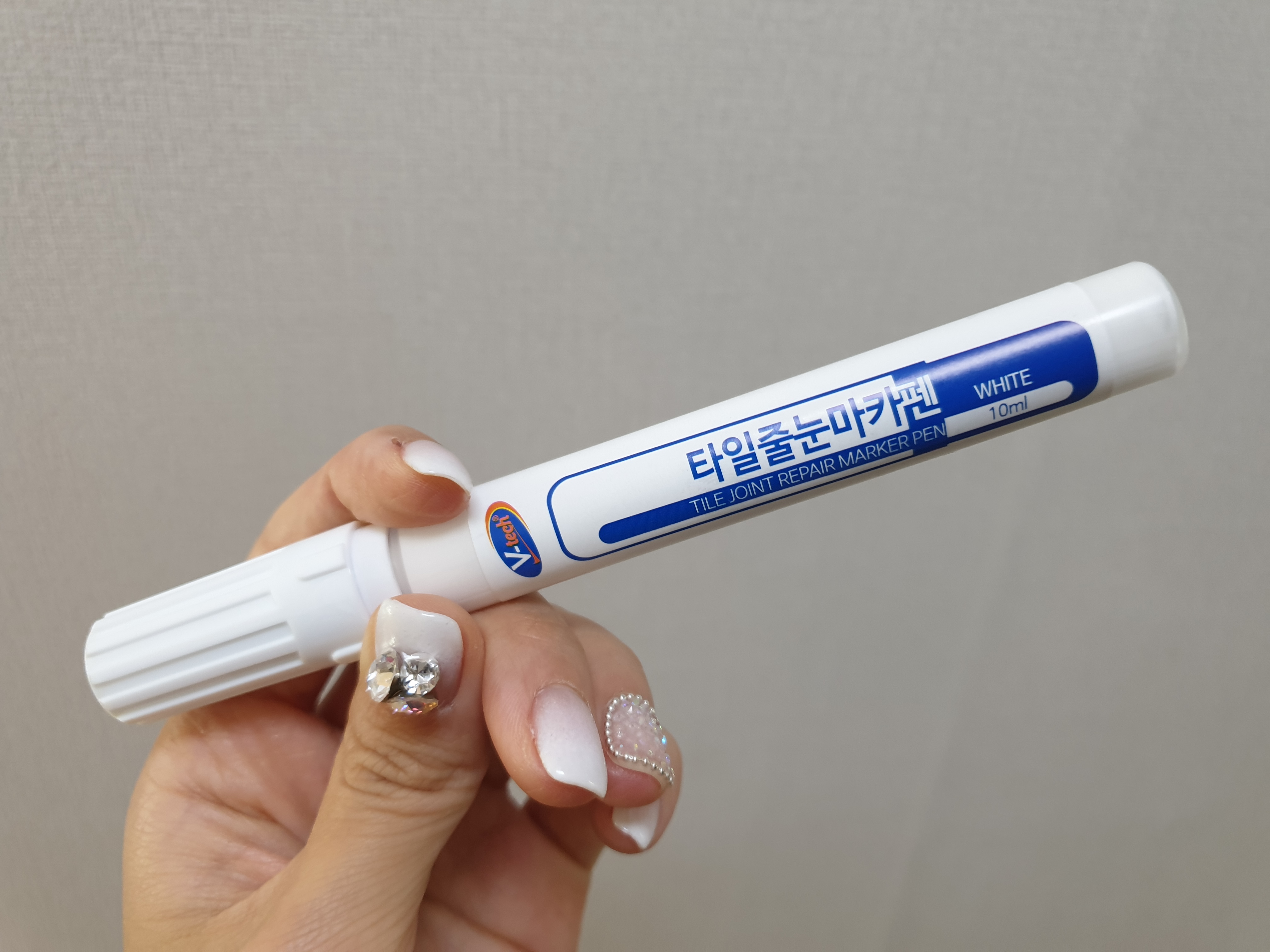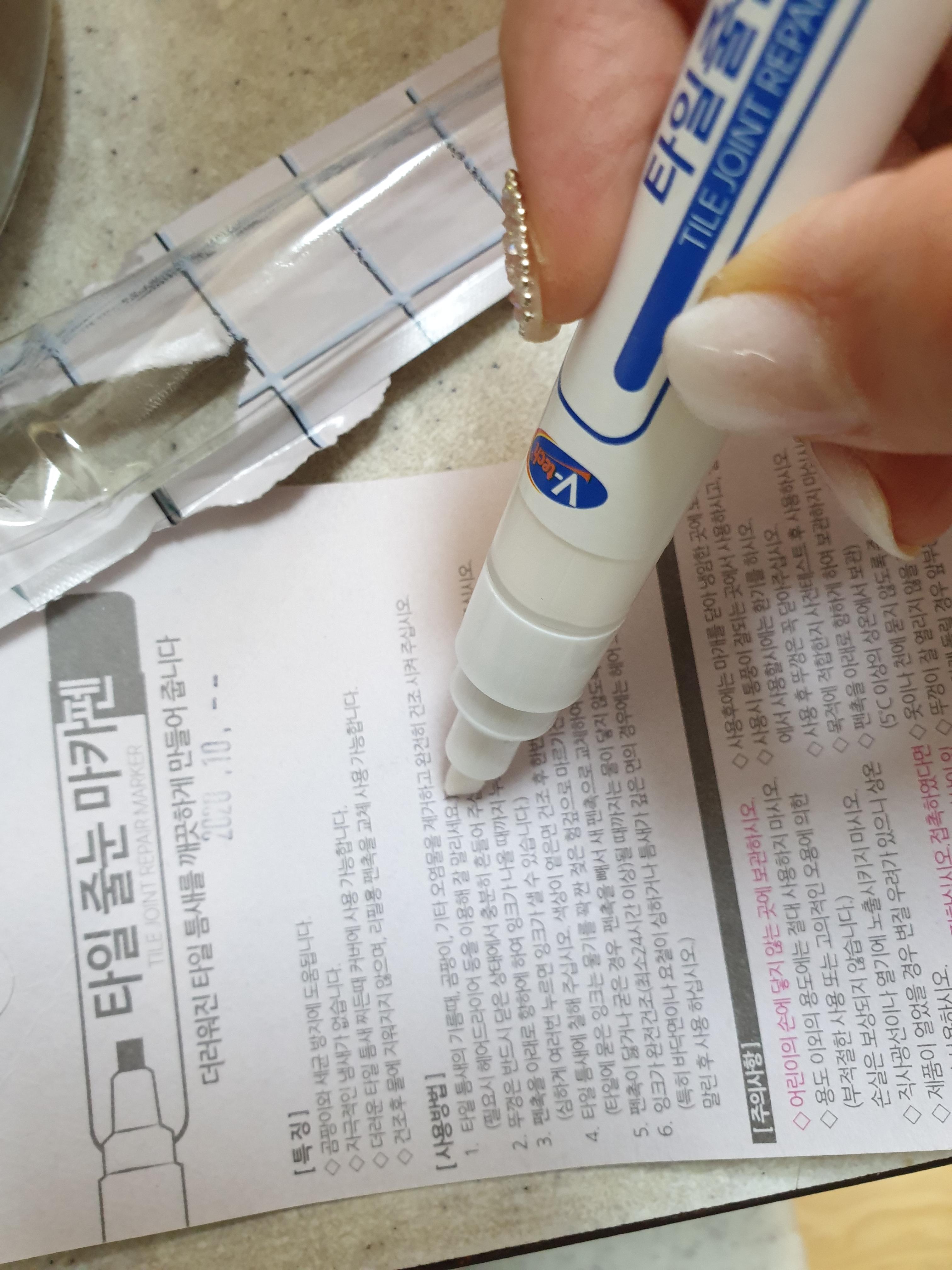 사실 시공이랄것도 없고 굉장히 야매(?)스럽지만 간편한것에 비해 효과는 굉장히 만족 합니다. 이렇게 하얀 잉크가든 펜으로 더러운 줄눈을 덧칠해주는 겁니다!