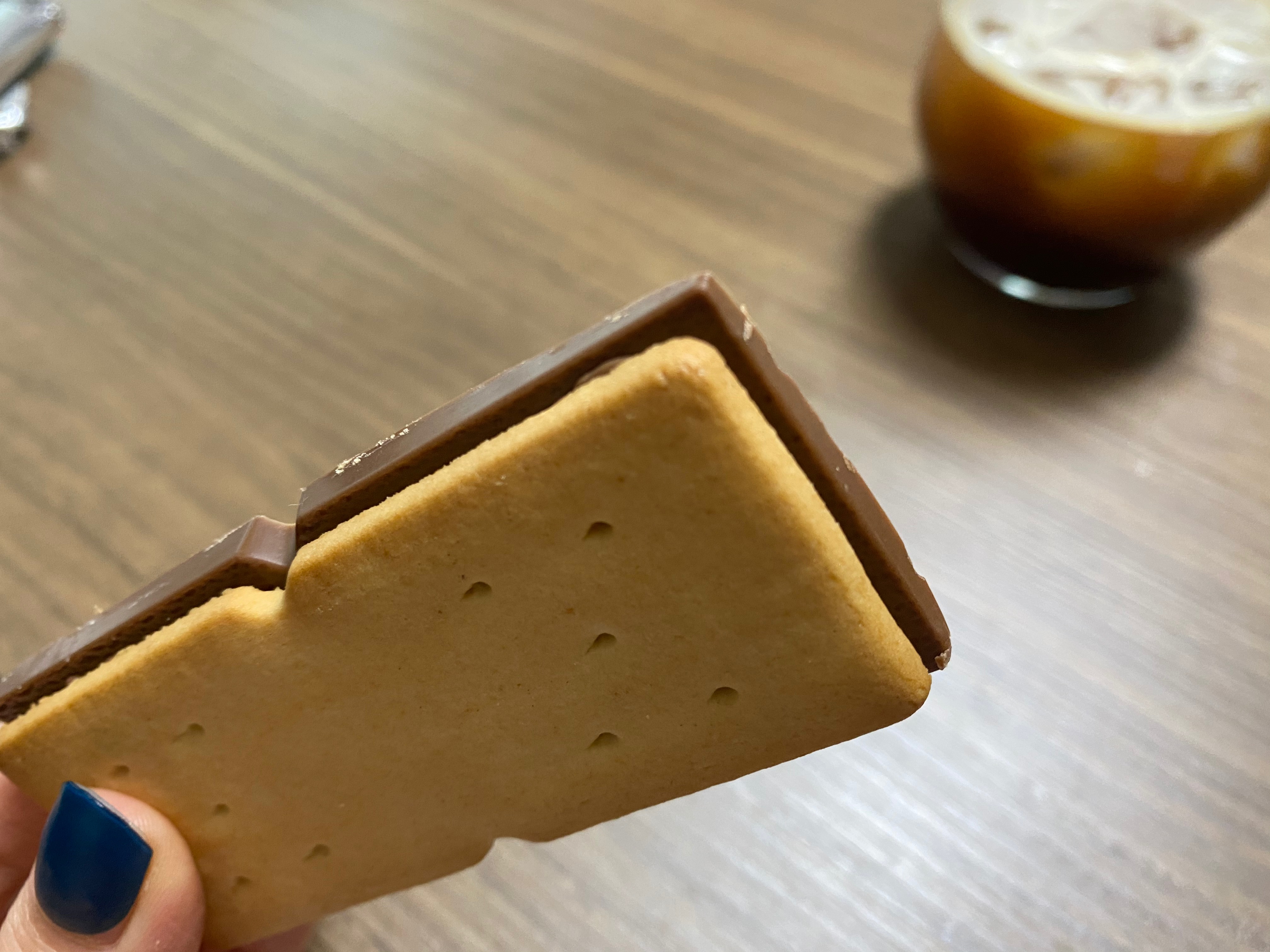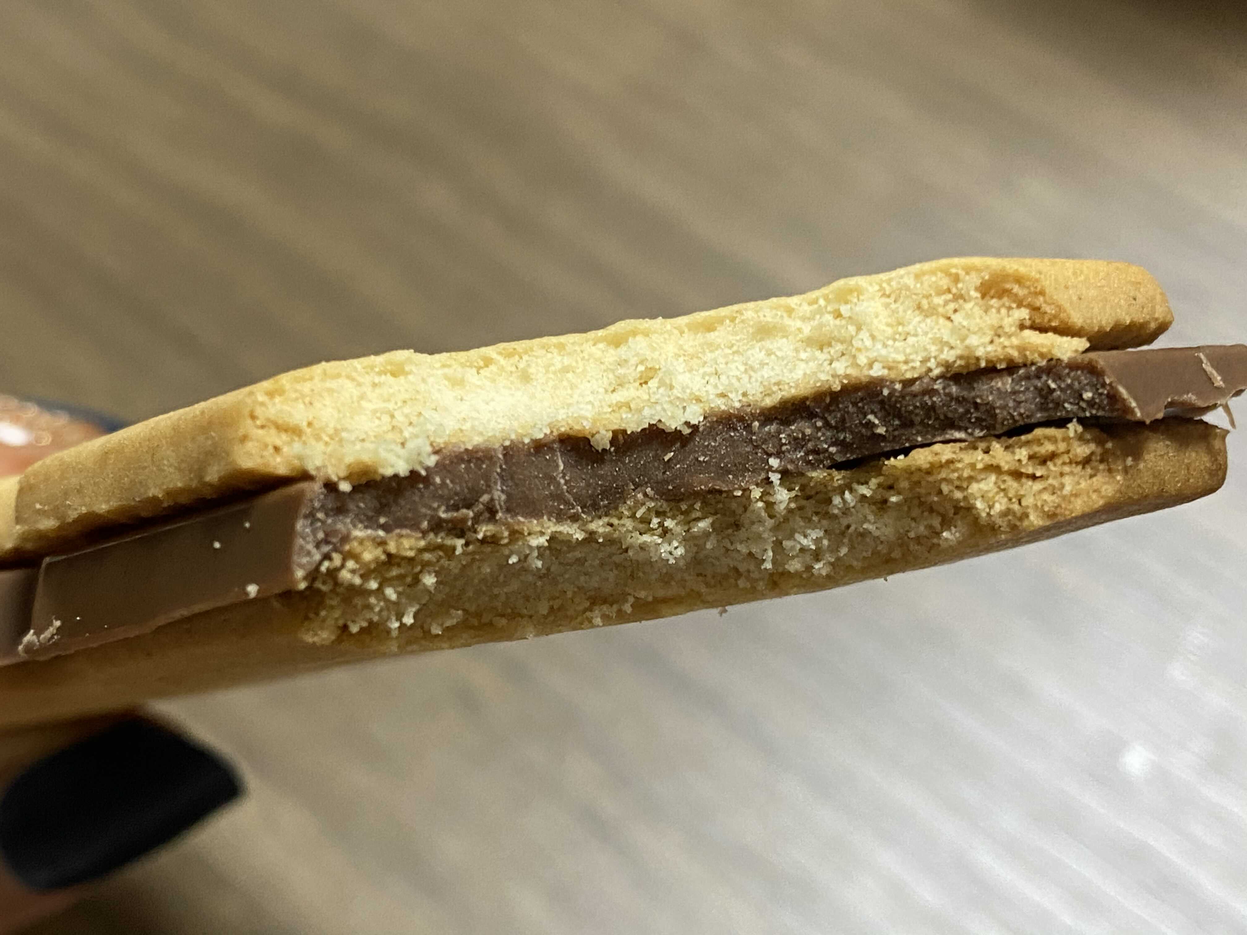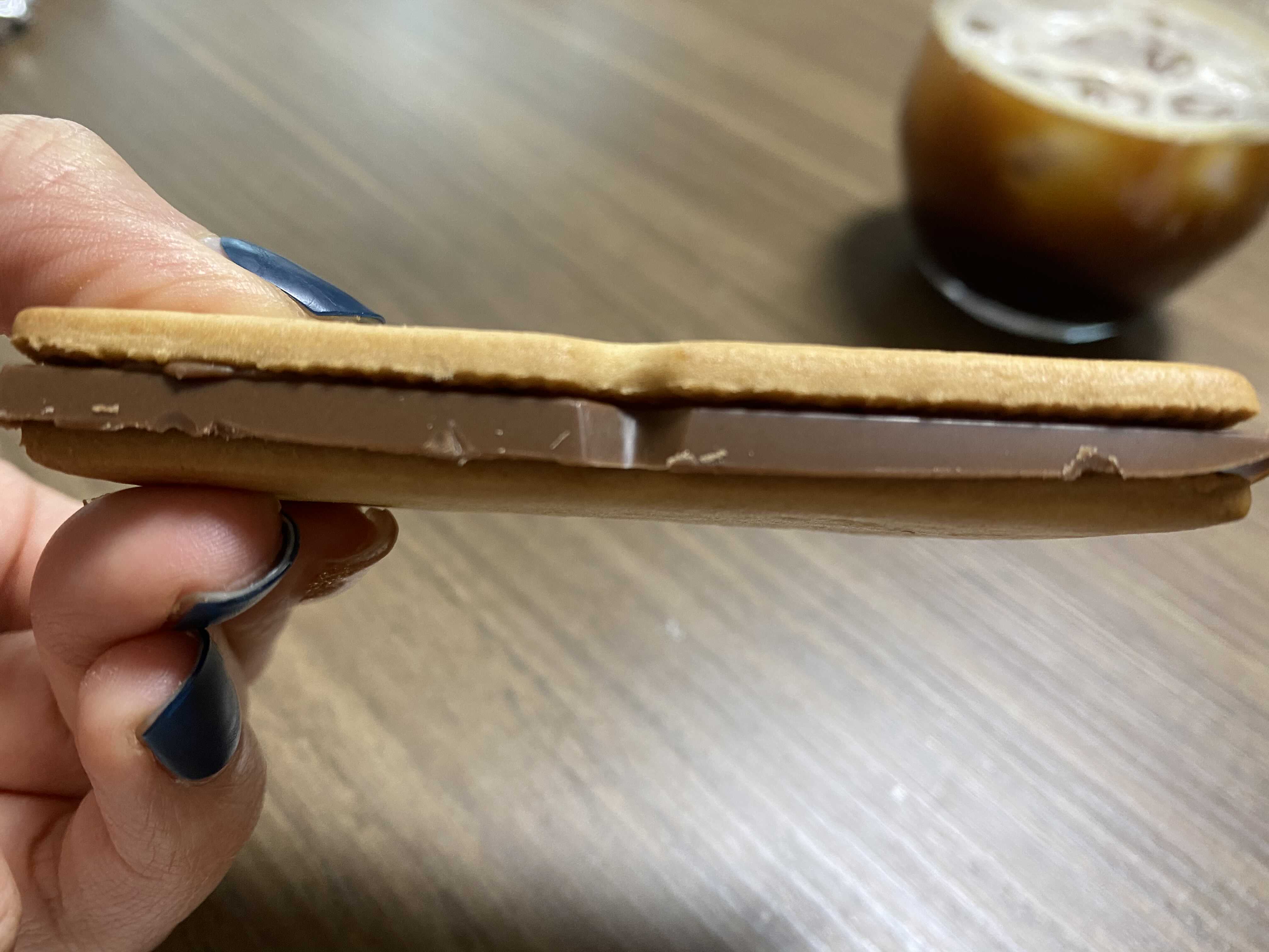 비스킷 사이에 초코가 샌드된 모양인데 초코가 꽤 두툼해서 인상적이었어요 ㅋㅋ