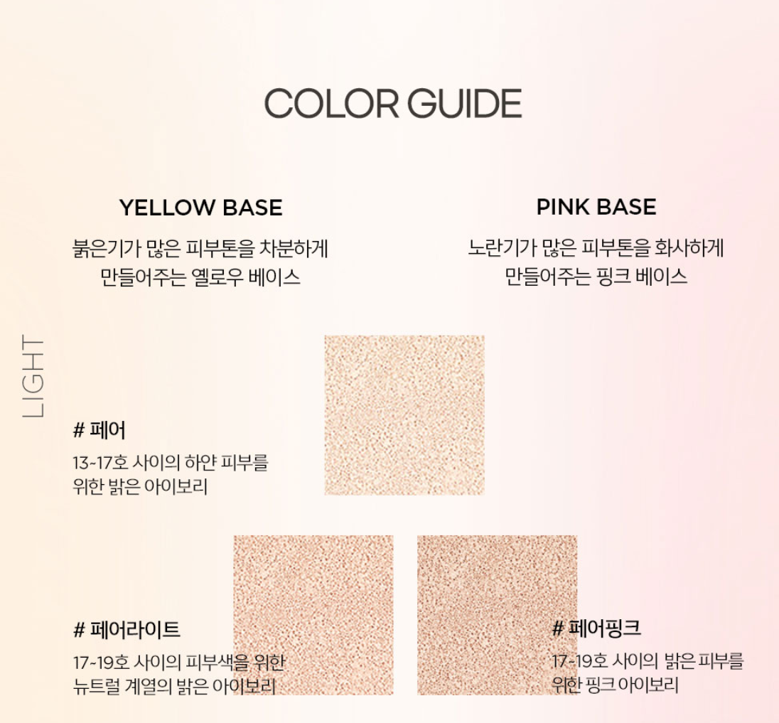 자연스러운 느낌을원하시는 22호, 밝고 화사한 느낌을 원하는 23 호 분들께 라이트 컬러가 잘 맞을거 같아요.