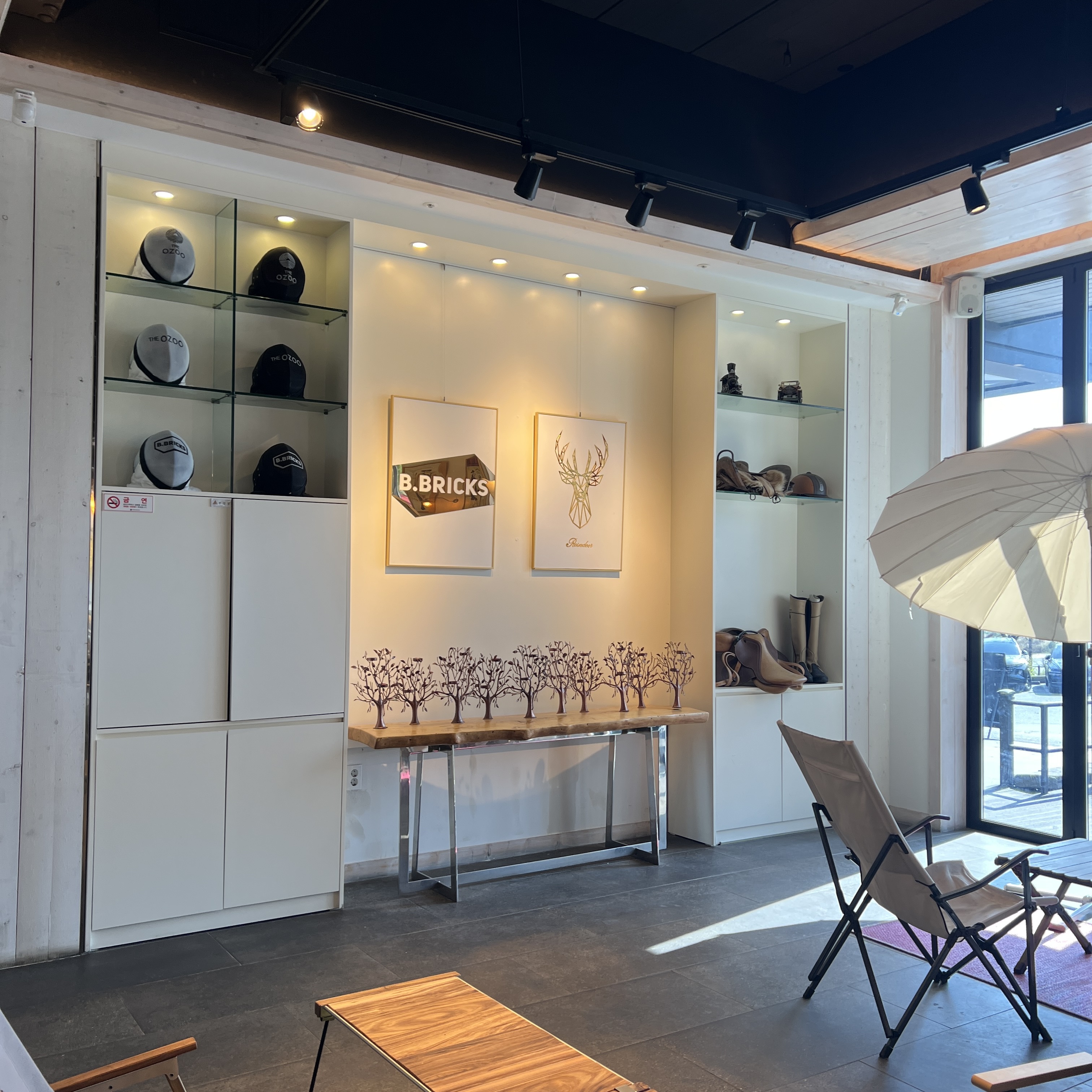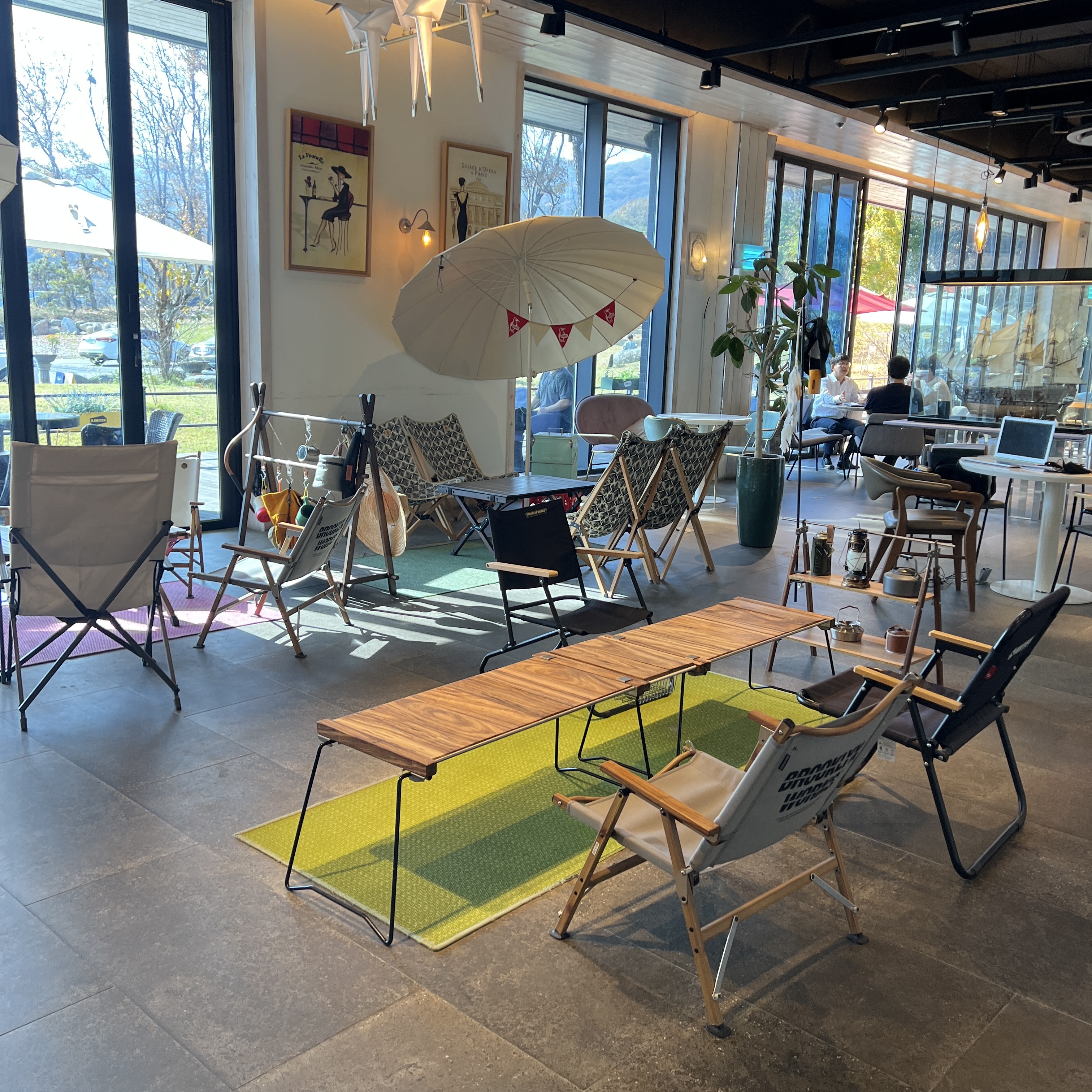 캠핑용품이 카페 초입에 이쁘게 셋팅되어있어요 ㅋㅋ