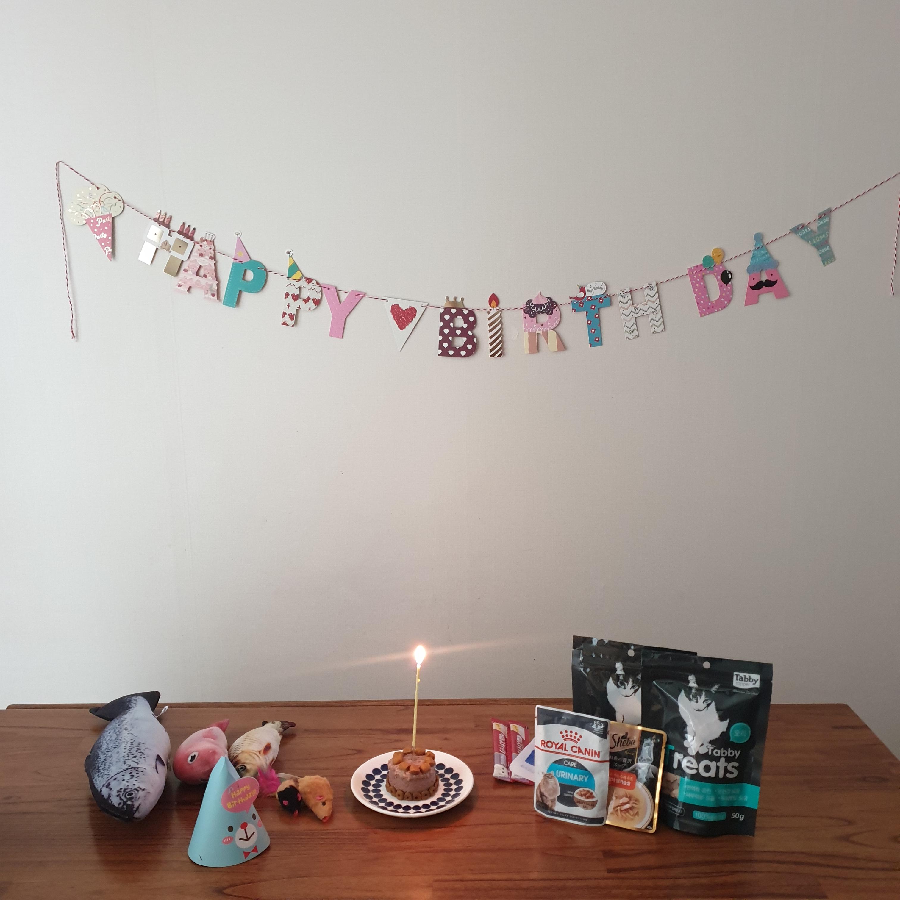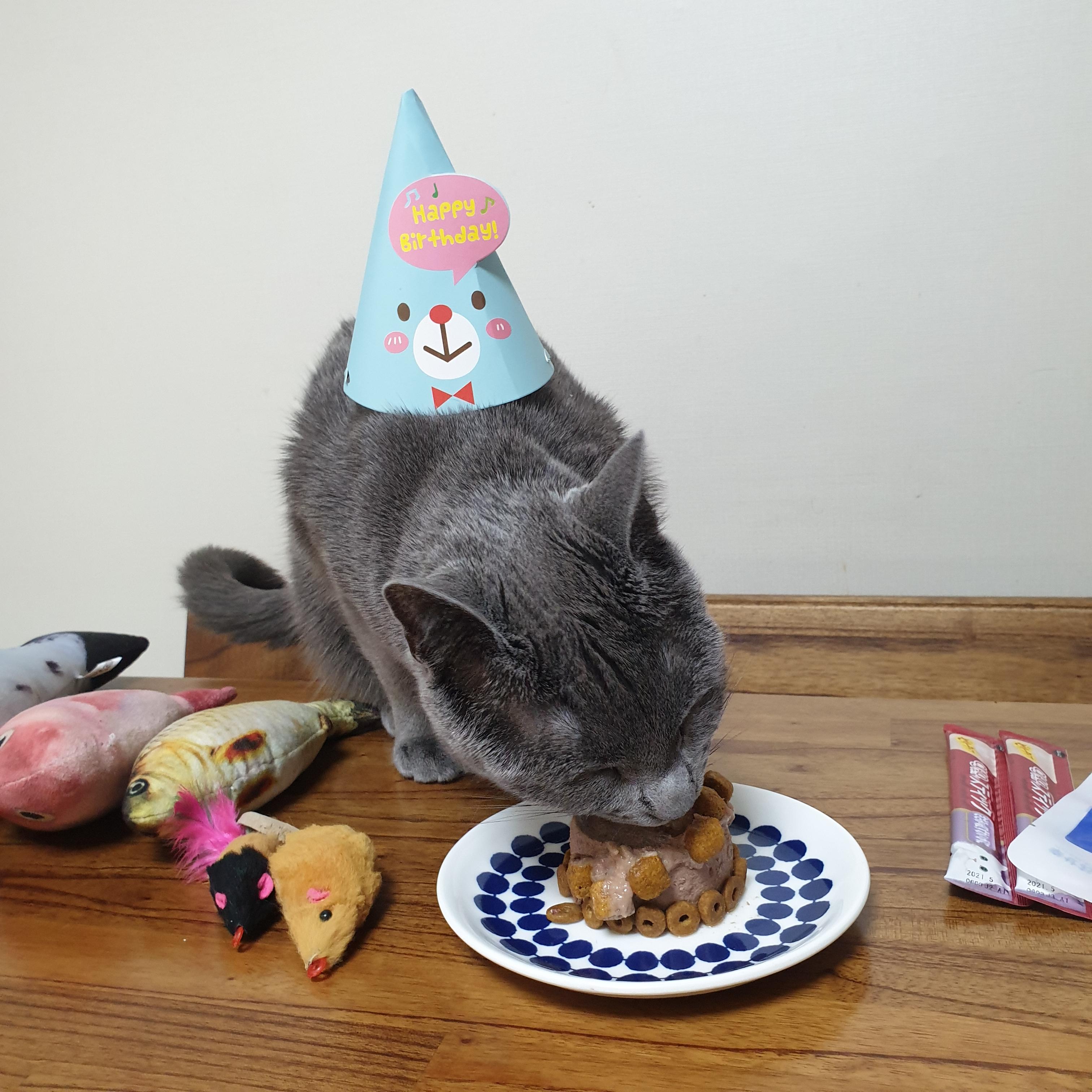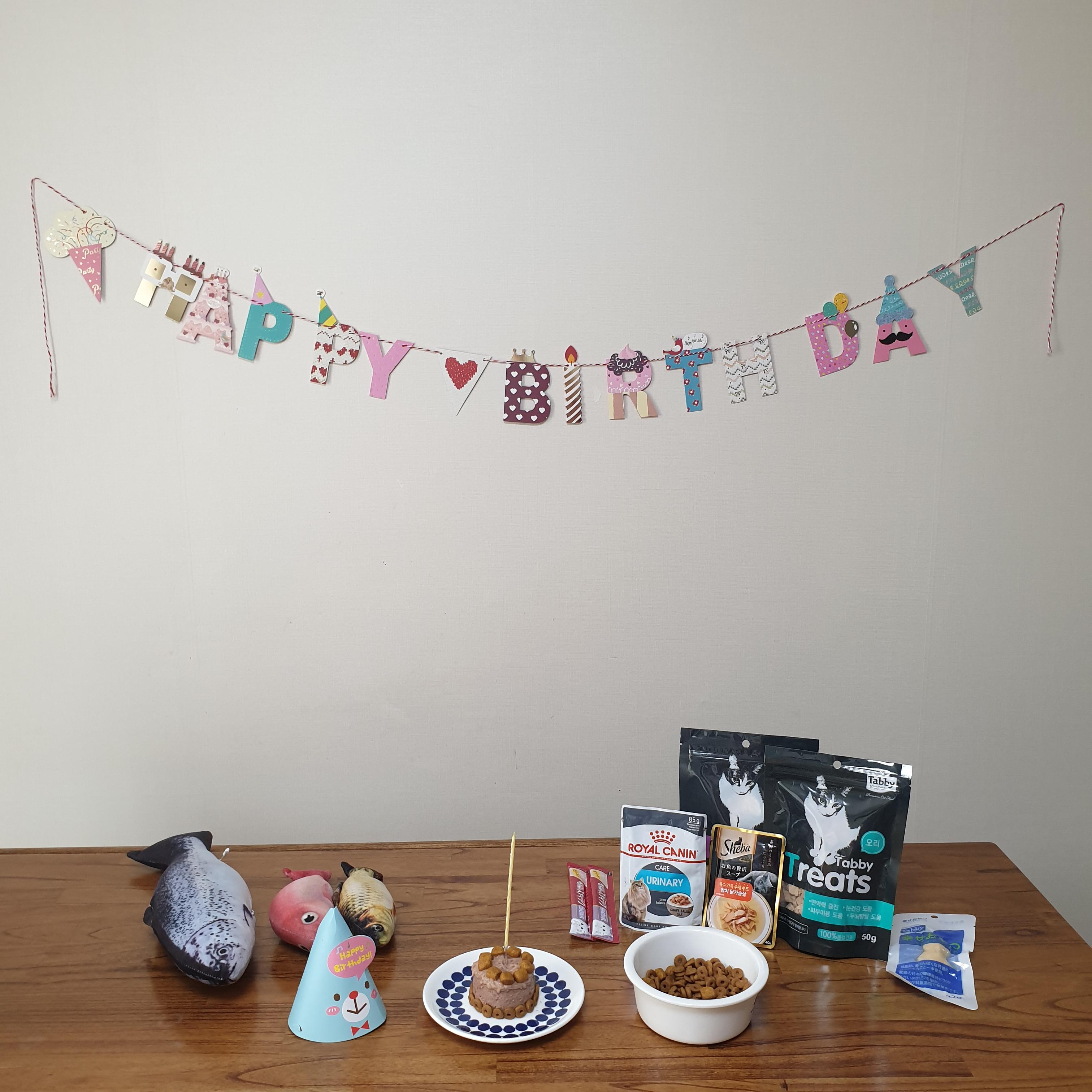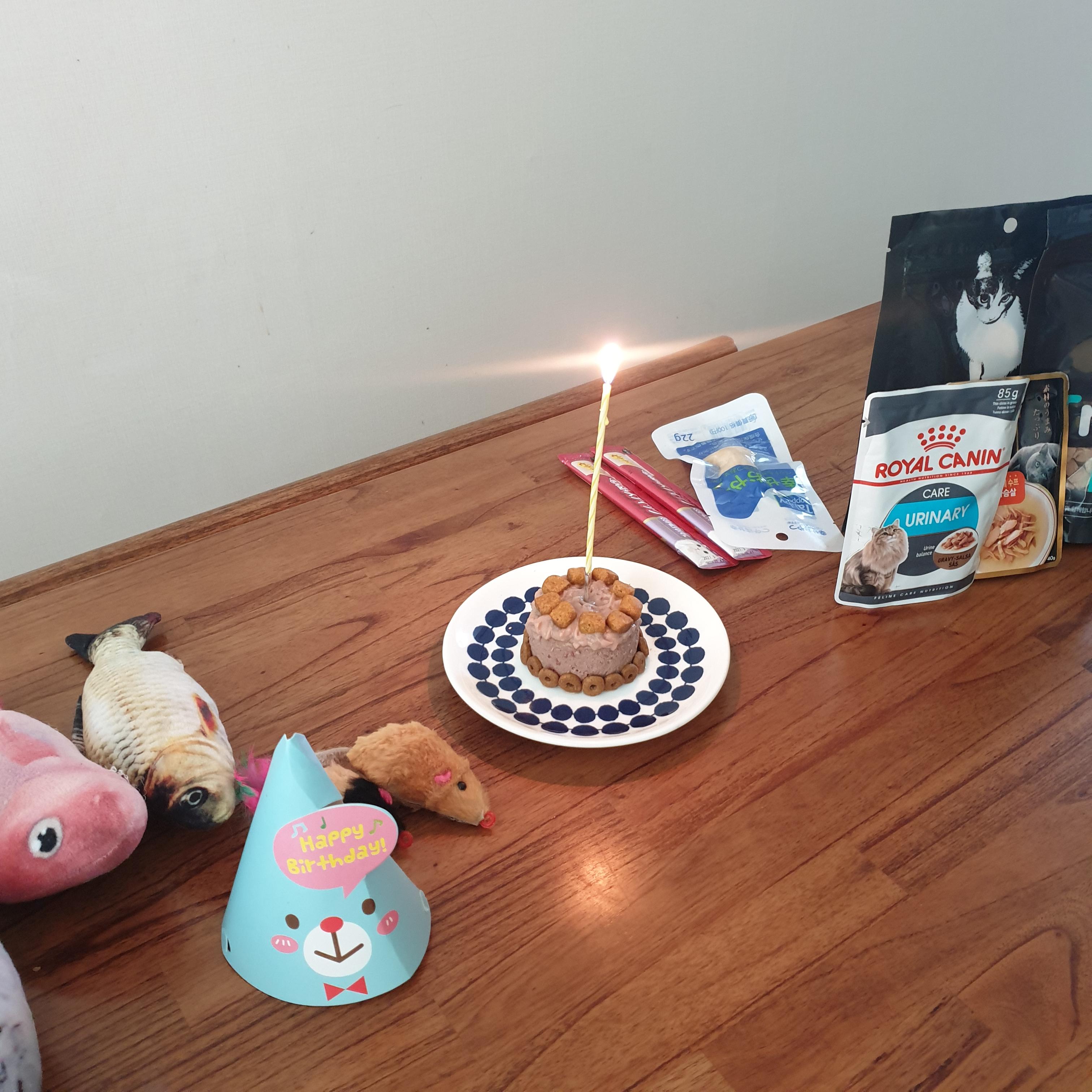 평소에 먹던 사료들로 주변에 둘러주고 초도 꼽았어요