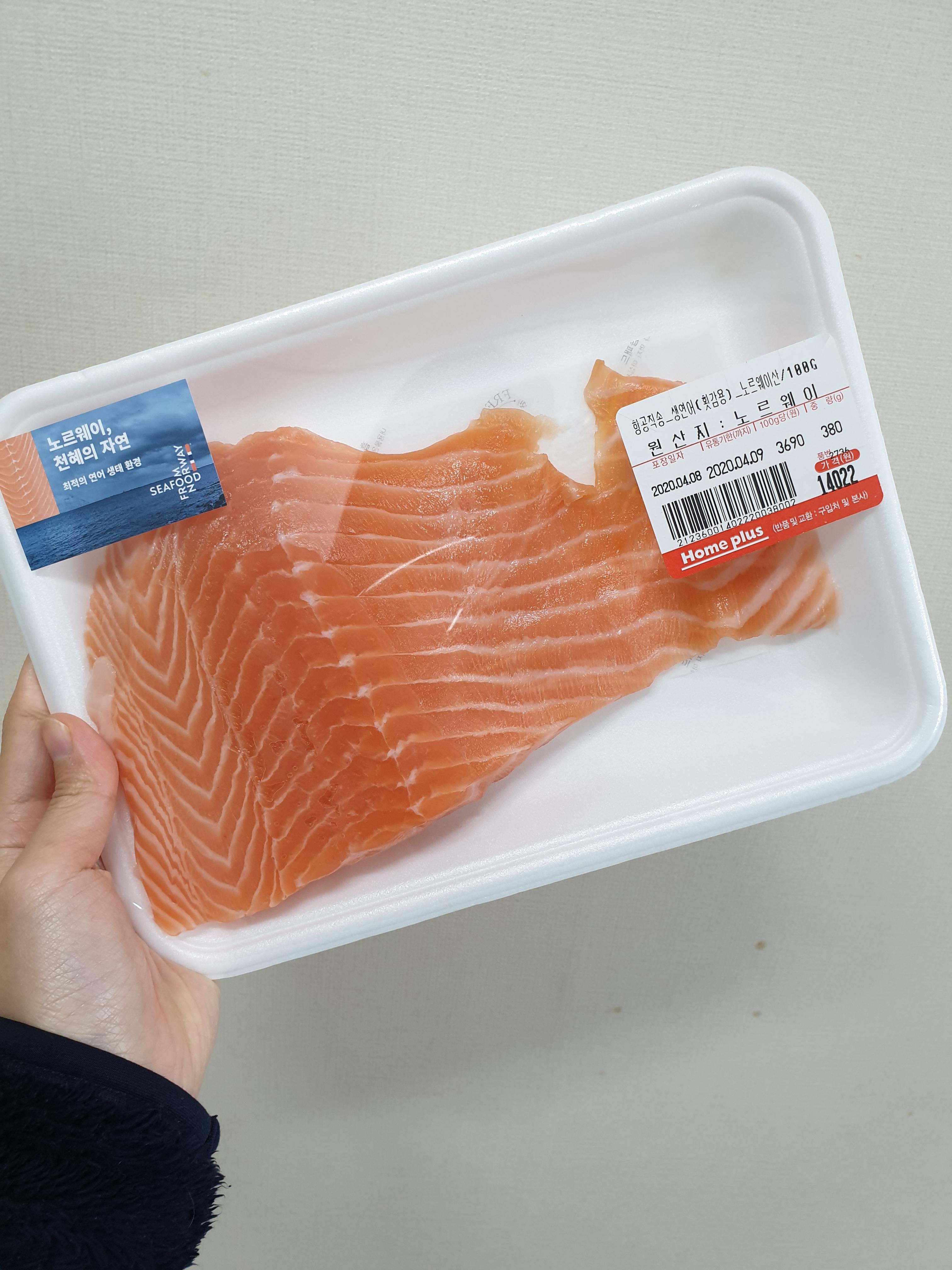 마트에서 집어온 연어는 노르웨이산 생연어(횟감용) 입니다.