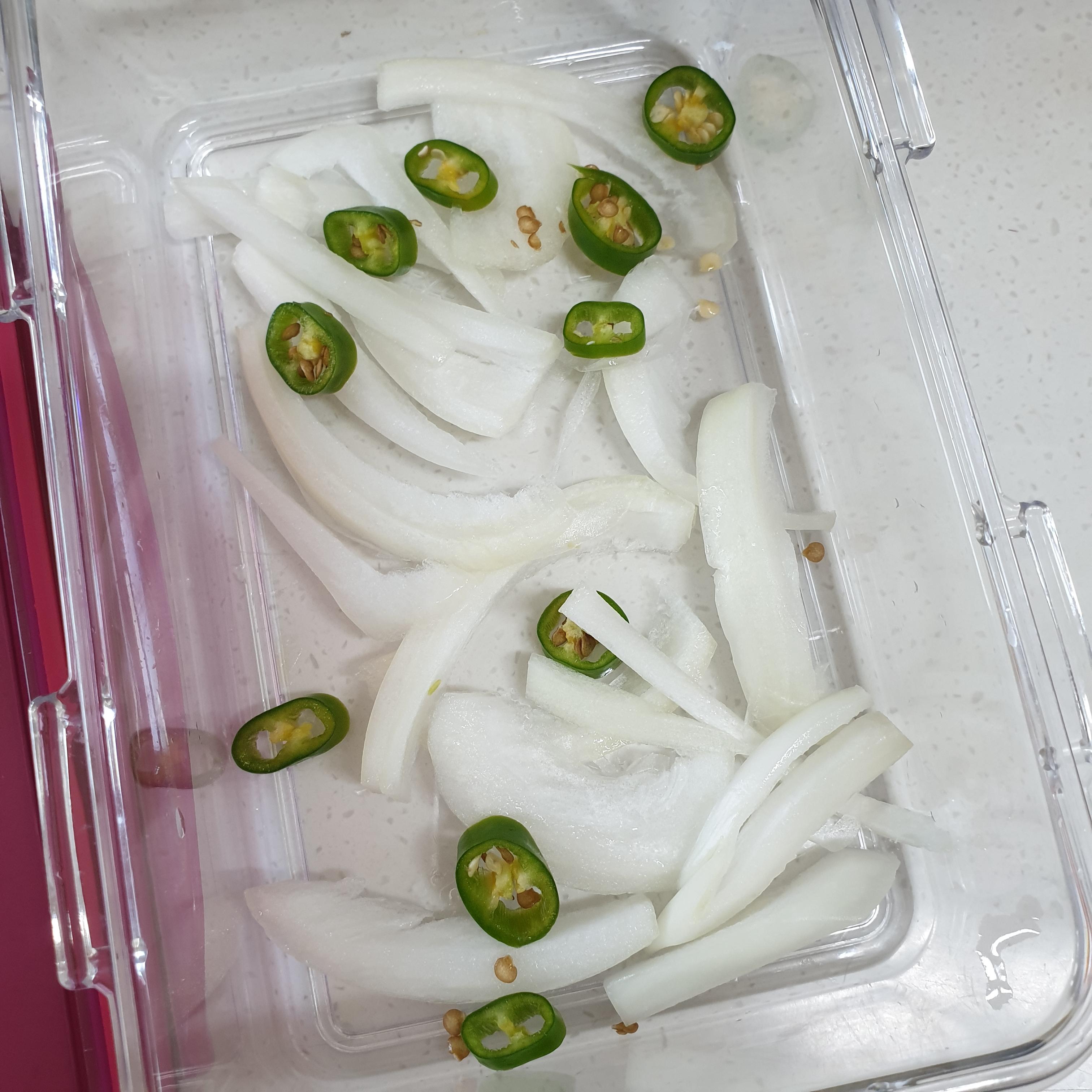 청양고추 두개와 양파반개도 썰어서 준비 해줍니다.