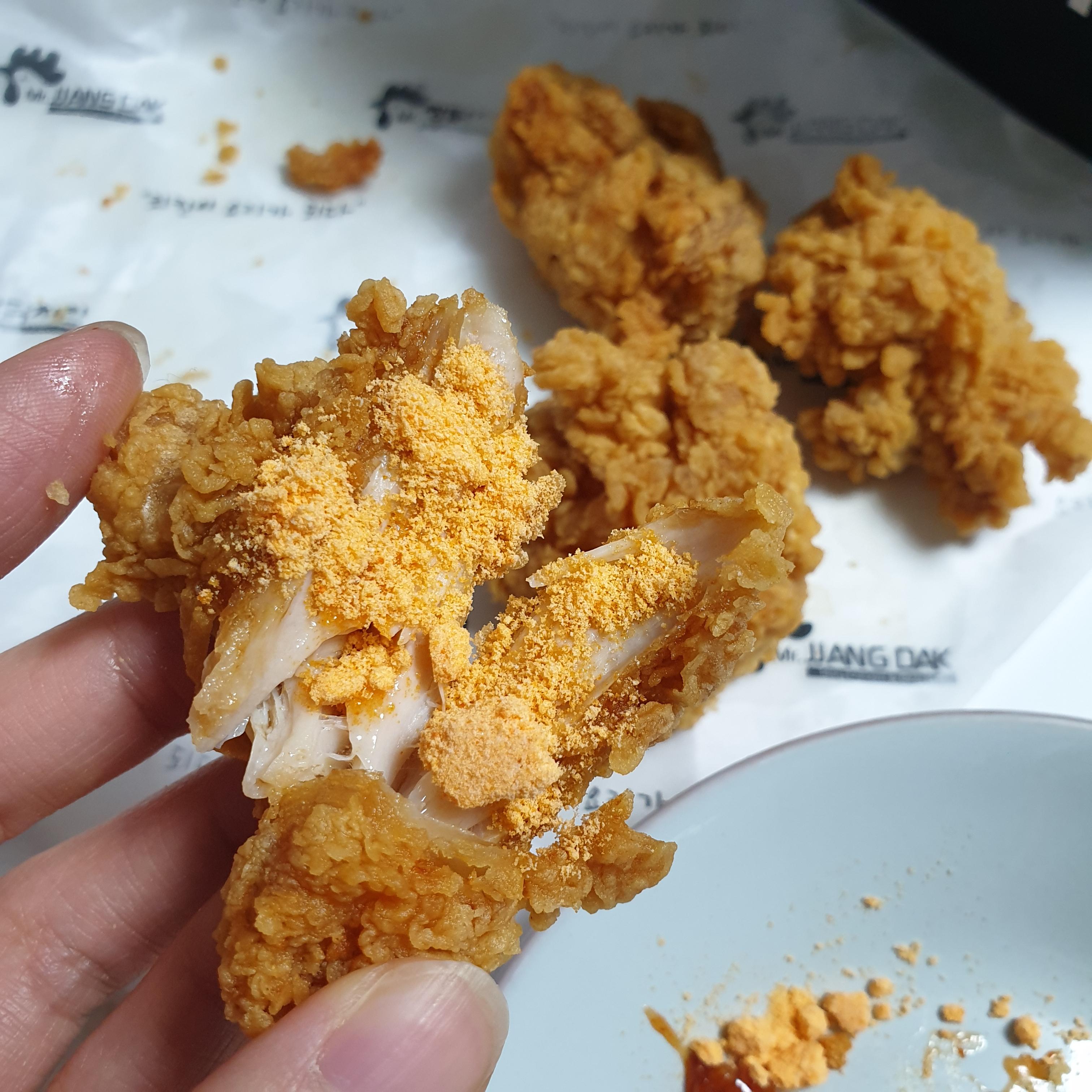 예전에 어디선가 사두었던 치즈맛 양념감자 시즈닝이 있어서 후라이드에 뿌려먹어 보았습니다.
