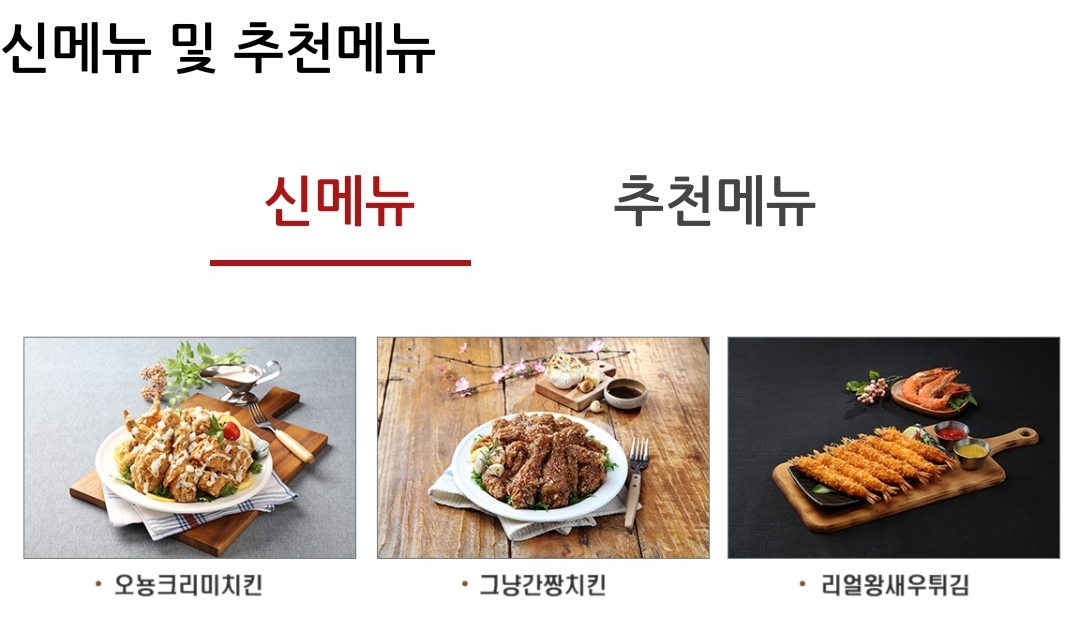신메뉴 오뇽크리미치킨, 그냥간짱치킨, 리얼왕새우튀김