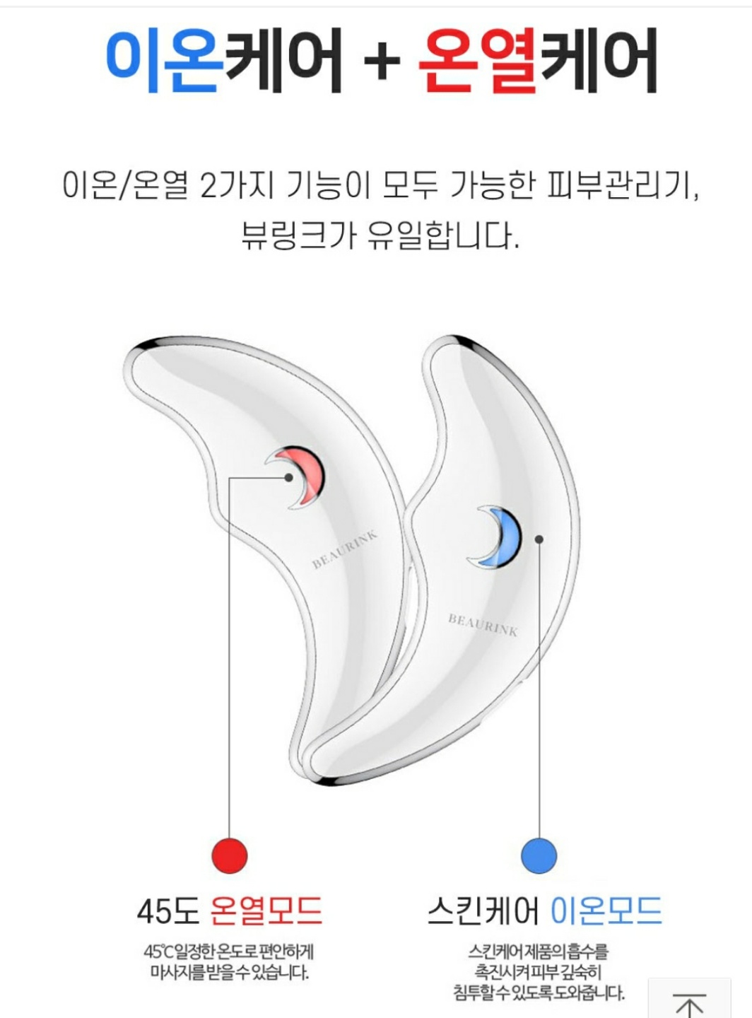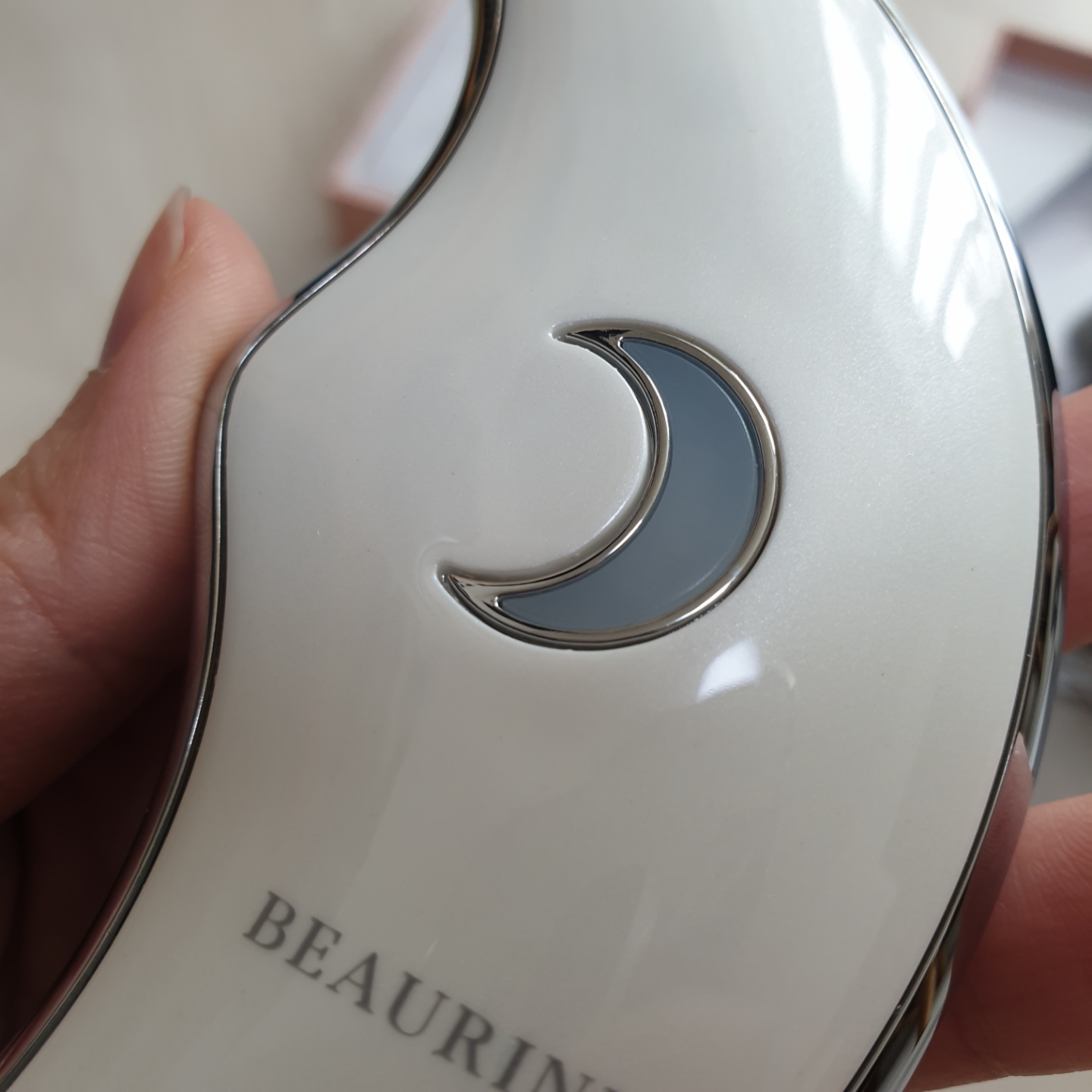 전원버튼을 한번 더 누르면 빨간조명이 들어오는데 마찬가지로 달을 꾹 누르고 있으면 30초 이내로 서서히 따뜻해집니다. 따뜻한 상태에서 마사지 하니까 피로도 풀리고 붓기도 빠지는게 느껴져요. 저는 요즘 세안후 유튜브에 괄사마사지영상같은거 틀어서 이걸로 따라하고 있어요. 두달 하니까 확실히 얼굴선이 정리되는 느낌이에요. 특히 턱선에 효과 직빵입니다.