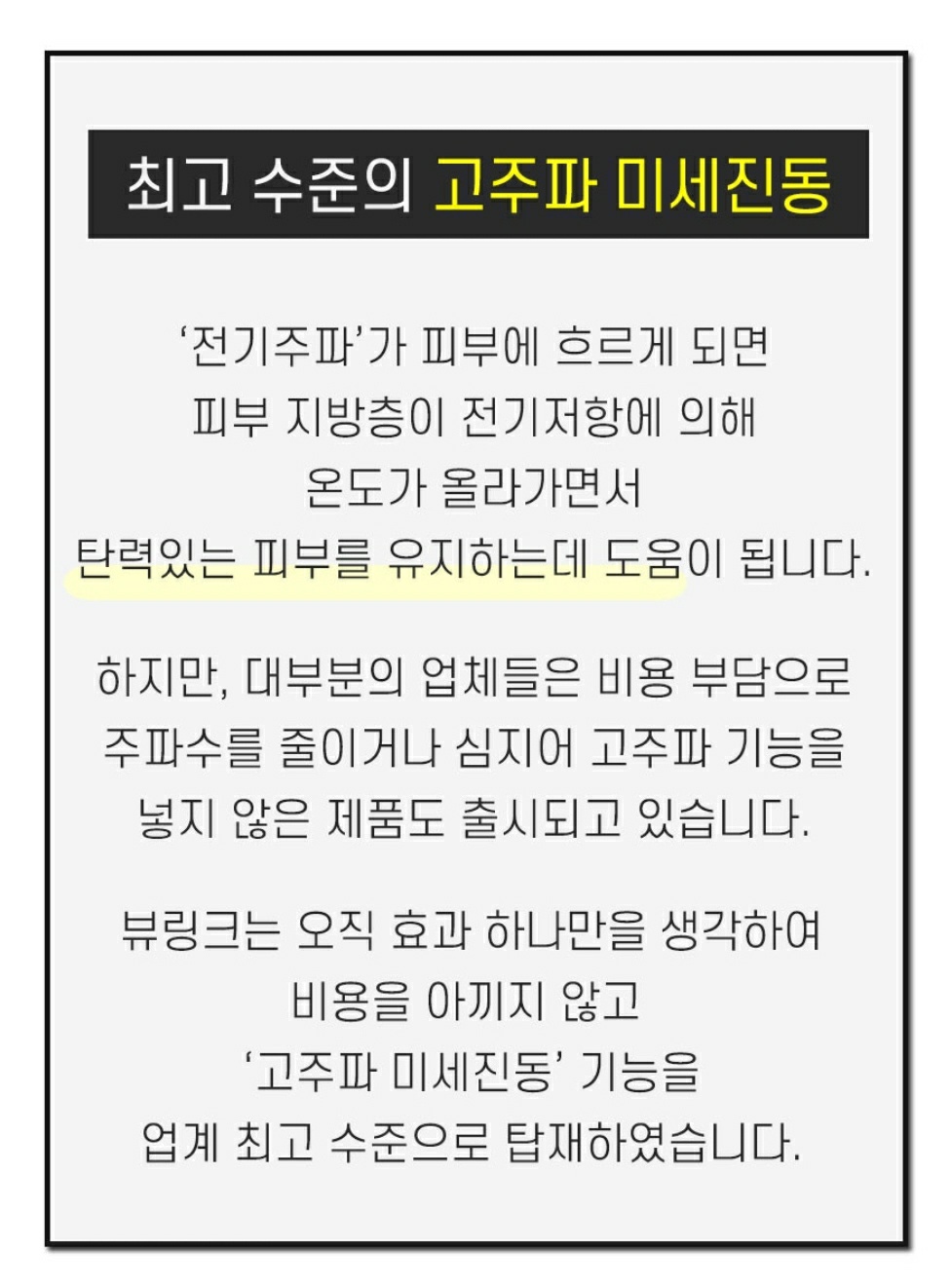 뷰링크 가격은 89,000원에 구매 했어요. 저렴한 가격은 아니지만 다른 홈케어 디바이스들 몇십만원 왔다갔다 하는거에 비해서는 아주 가성비 좋은 제품입니다. 저렴하다고 다른 제품들에 비해 기능이 떨어지는 건 절대 아닙니다. KTR, KC안전인증 모두 받았고, 탄력있는 피부를 유지하는데 도움이 되는 고주파 미세진동기능은 물론 이온케어와 온열케어 모두 가능합니다.